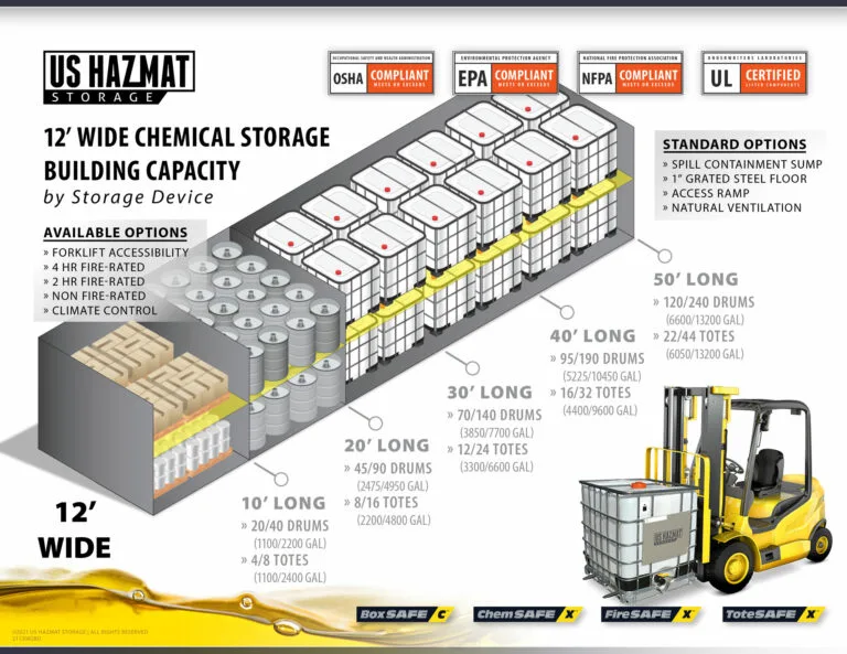 12 Ft. Wide Chemical Building Storage Capacities